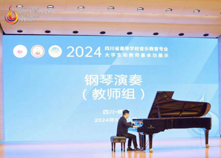 5月27-29日,2024年四川省高等学校音乐教育专业大学生和教师基本功展示活动在绵阳师范学院隆重举行。全省共有39所高校的91名教师参与了此次展演活动,在为期五天的激烈角逐中,四川传媒学院的青年教师陈俊彤与侯力维分别荣获钢琴演奏(教师组)和声乐演唱(教师组)一等奖,展现了我校音乐教师较高的审美和人文素养及优秀的教育教学水平。
