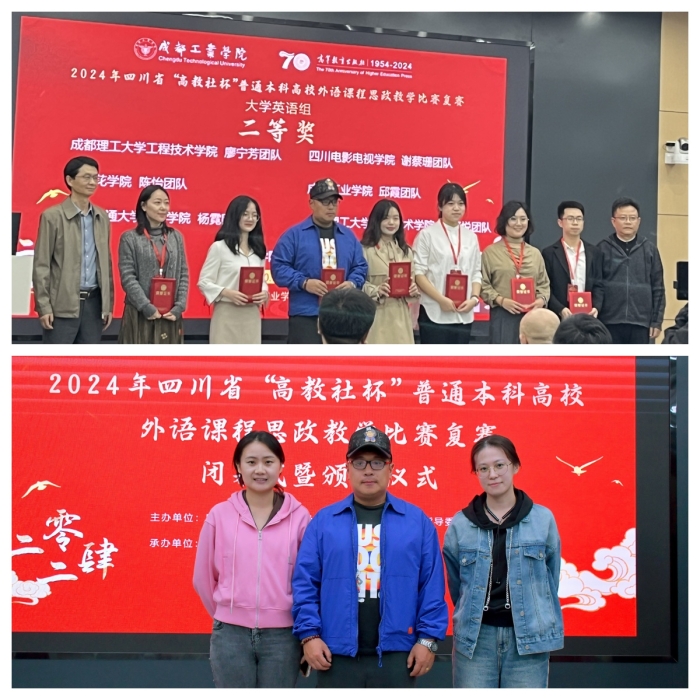 由四川传媒学院外国语部的王文瀚老师领衔的教师团队,经过精心筹备和安排,顺利通过了初赛的选拔,成功晋级复赛。在10月13日,团队一行前往成都工业大学,参与了激烈的复赛角逐。经过一番精彩对决,团队最终斩获二等奖的殊荣。在整个比赛过程中,团队成员展现了坚韧不拔、勇往直前的拼搏精神,以及不畏艰辛、永不言败的坚韧作风,同时也充分体现了我校教师的青春活力与独特风采。