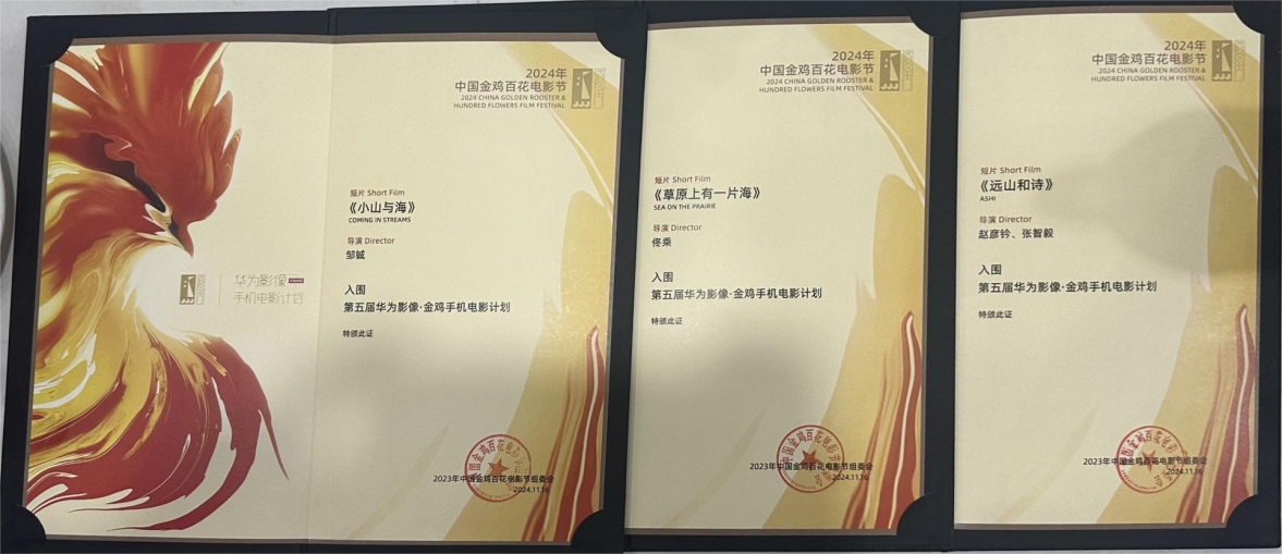 2024年11月14日至16日,第37届中国电影金鸡奖在厦门举办,“华为影像·金鸡手机电影计划”表彰仪式暨主题论坛也隆重举行。本届金鸡手机电影计划由中国金鸡百花电影节组委会主办,旨在探索手机电影创新创作的广阔空间,为中国电影产业输送全球优质人才,助力华语电影繁荣发展。金鸡手机电影计划奖项分为华为影像荣誉、最佳艺术探索荣誉、最佳纪录影片荣誉、最佳超短片荣誉、最具潜力导演荣誉、最佳摄影技术荣誉以及高校特别关注荣誉7个投奖赛道。